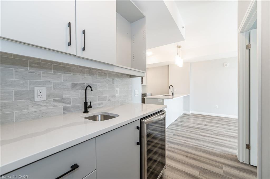 HIGHLY SOUGHT-AFTER GARMENT CONDOS! Act quick before it's gone! This one bed + bar area, one bath unit features LOADS of upgrades. Bright kitchen with black hardware, clean lines, upgraded appliance package, breakfast bar, premium flooring, great sized bedroom, 4pc bathroom, a bonus area with extra upgraded wet bar, bar fridge and extra storage you won't see in any other unit! This unit offers in-suite laundry, balcony, one underground parking space and a locker. With some of the nicest finishes selected, you will feel at home the moment you walk in! The building offers some of the best amenities a building offers in Downtown Kitchener: rooftop pool, fitness room, party room, relaxation area, yoga spot, pet run, urban park, sport court, it's no wonder this is the place to be. Located steps to downtown Kitchener, Google, KPMG, Deloitte, future LRT hub, Go Train, D2L, Communitech, School of Pharmacy, School of Medicine, Victoria Park, shops, restaurants, entertainment and so much more! Base internet, heat, a/c and water included in fees. Tenant to pay hydro, cable/tv, tenant's insurance.