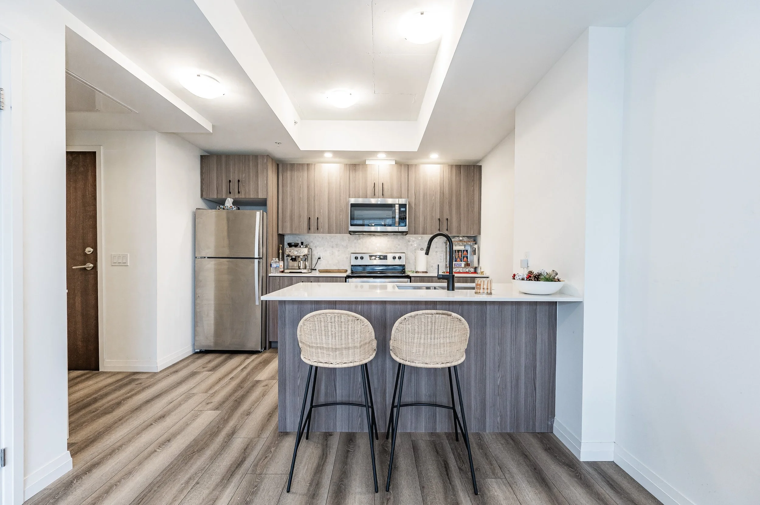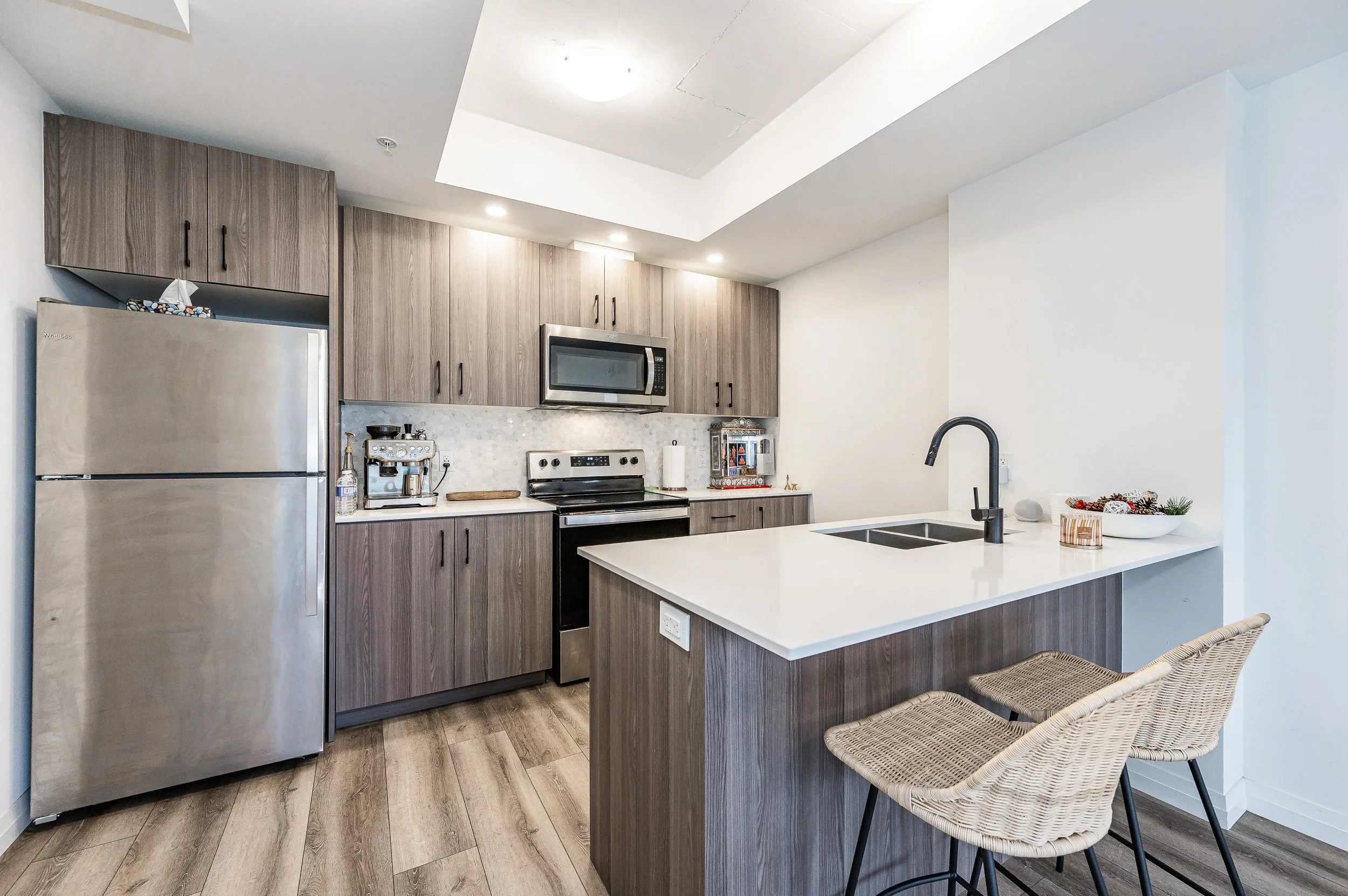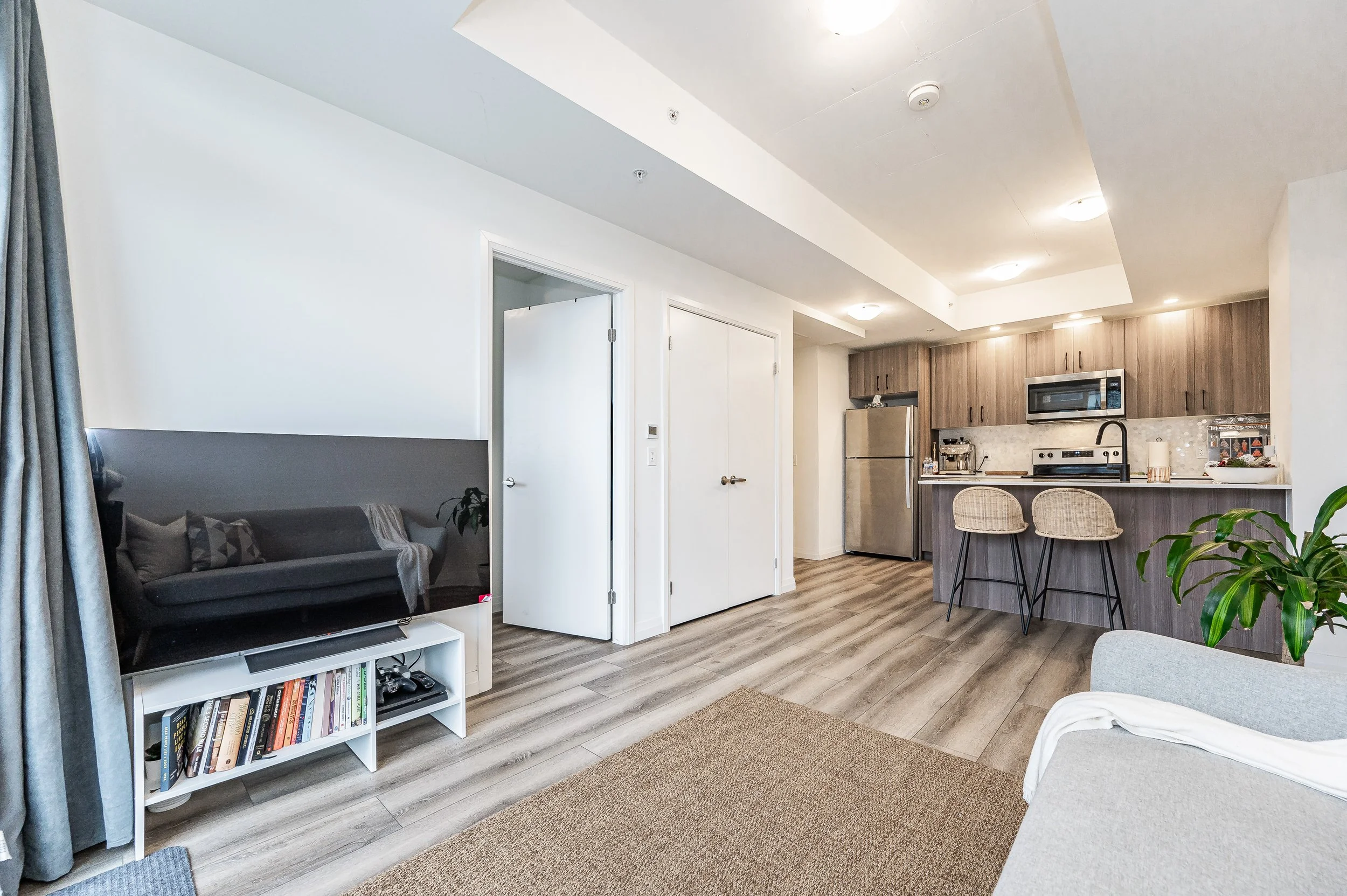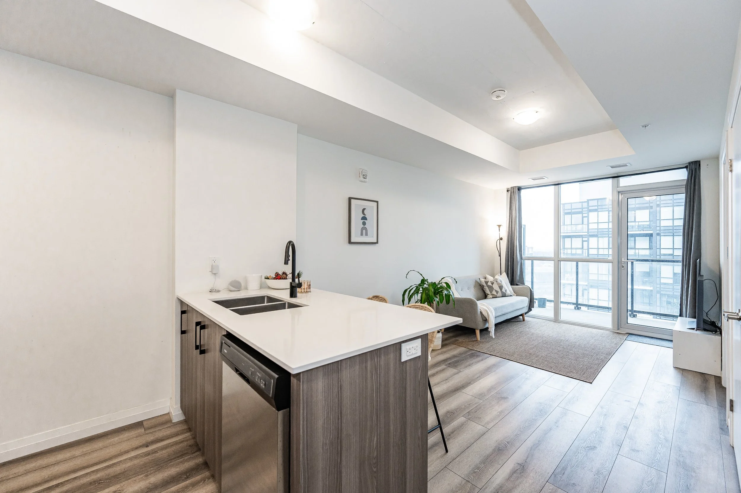 HIGHLY SOUGHT-AFTER GARMENT CONDOS! Act quick before it's gone! This one bed, one bath unit features is available February 1st. Comes with one underground parking space. Bright kitchen with clean lines, breakfast bar, premium flooring, great sized bedroom, 4pc bathroom, in-suite laundry, and balcony. With some of the nicest finishes selected, you will feel at home the moment you walk in! The building offers some of the best amenities a building offers in Downtown Kitchener: rooftop pool, fitness room, party room, relaxation area, yoga spot, pet run, urban park, sport court, it's no wonder this is the place to be. Located steps to downtown Kitchener, Google, KPMG, Deloitte, future LRT hub, Go Train, D2L, Communitech, School of Pharmacy, School of Medicine, Victoria Park, shops, restaurants, entertainment and so much more! Rogers Base Internet, heat, a/c and water included. Tenant to pay hydro, cable/tv, tenant's insurance. *Photos shown are prior to the current tenant taking possession.