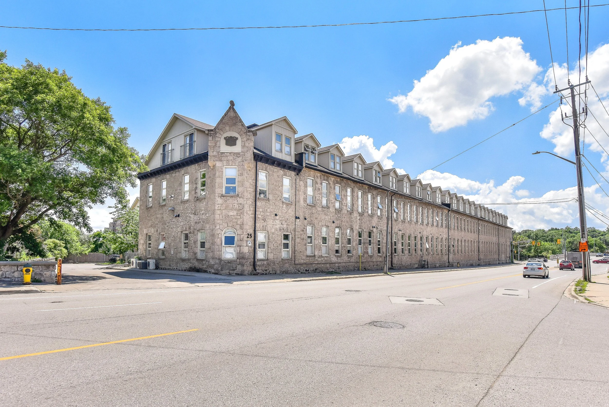 Experience authentic loft-style living steps from the Grand River, restaurants, and cafés. This rare 1-bedroom, 1-bath condo blends heritage character with modern comfort across 620 sq. ft. of thoughtfully designed space. Soaring 14-foot ceilings, 10-foot windows with deep sills, and exposed ductwork showcase the building’s industrial roots, while concrete and brick interior walls add timeless texture. The open-concept layout features a unique arched brick alcove in the dining area, granite countertops, stainless steel appliances, in-suite laundry, central air, and in-floor radiant heating. Added conveniences include generous basement storage, a pulley system for bike storage, and one parking space (#27) directly outside the unit. Enjoy a lifestyle surrounded by Galt’s best - scenic river trails, local cafés, shops, theatres, and the U of W School of Architecture are all just a short walk away.